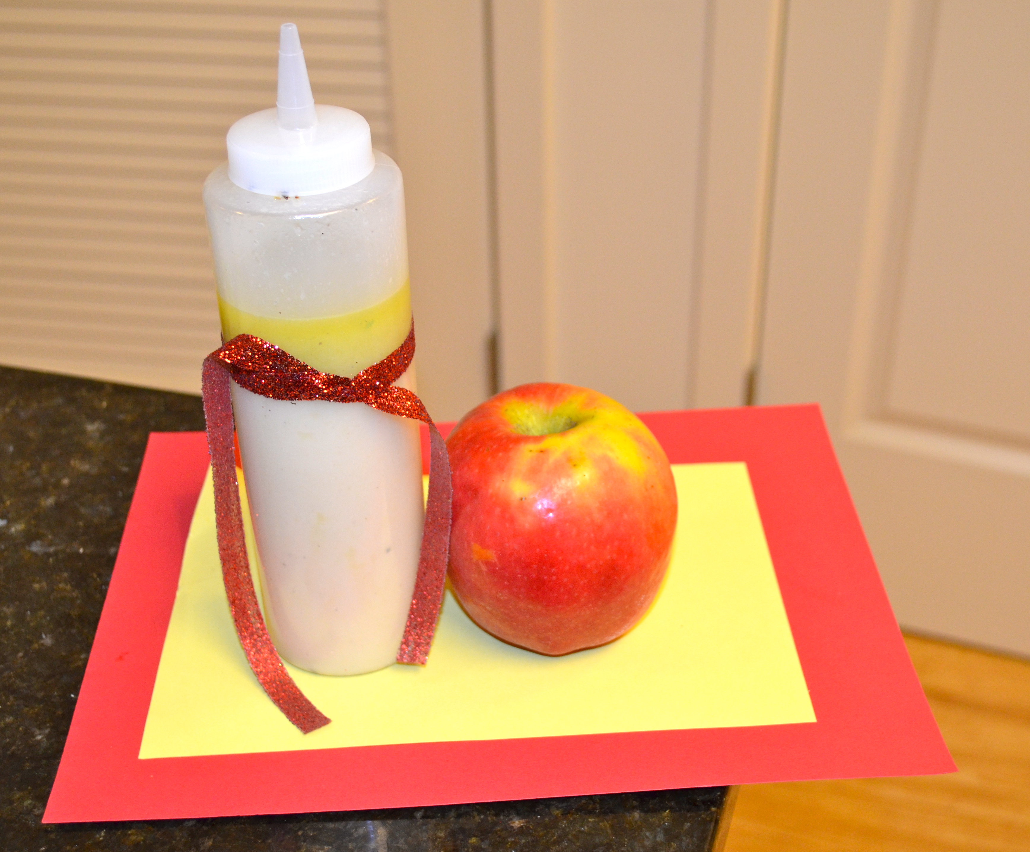 This vinaigrette is made using apple cider vinegar and apple juice. I bought the Juicy Juice because it doesn’t have any extra added sugars. The sugars are all natural from the apple.
