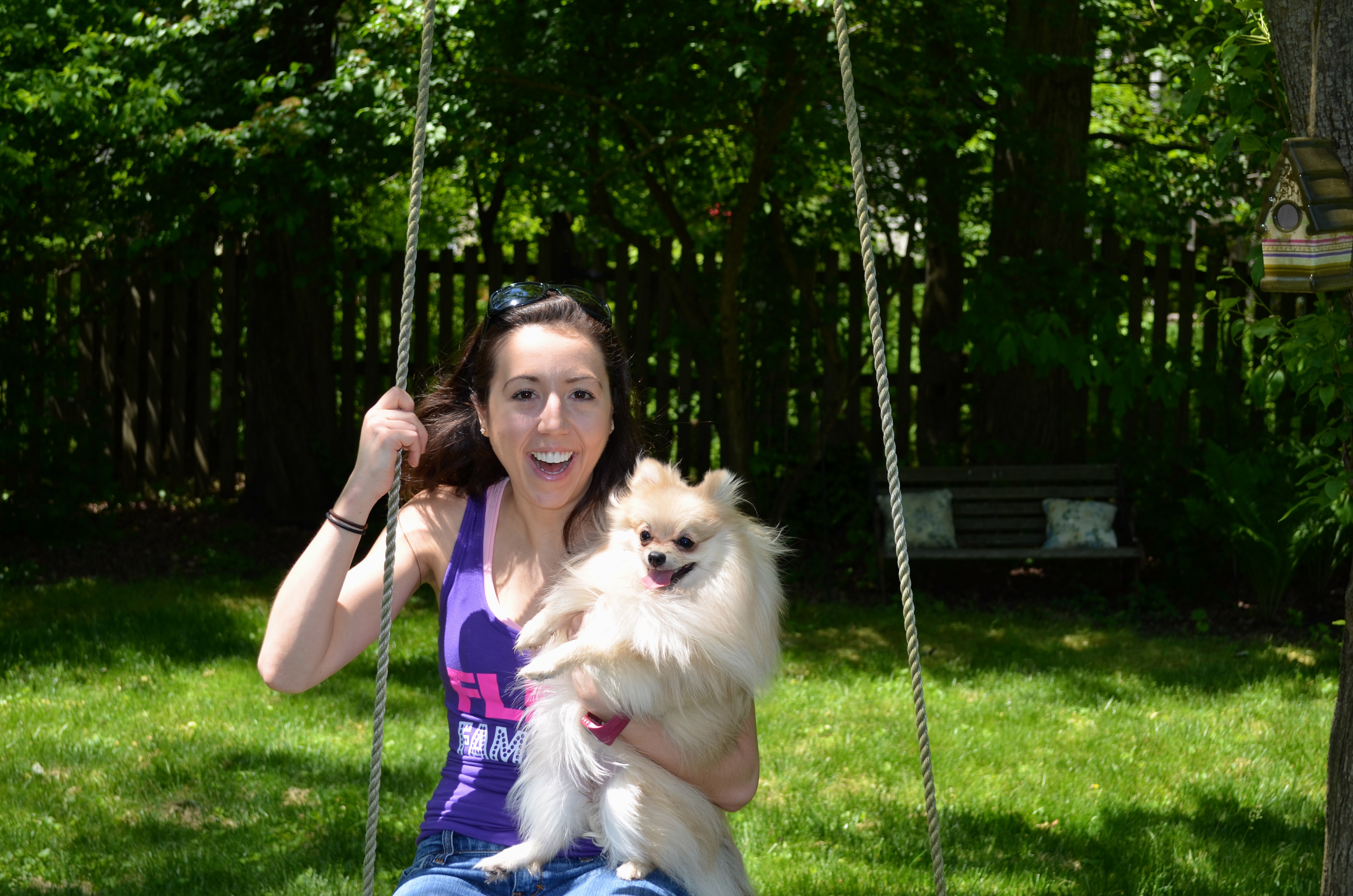 At first Phoebe was a little uncertain. She was in a new place, but she quickly felt comfortable in her surroundings and just jumped around and played on the deck. We decided to take her in the yard and she just had a ball! Check out how gorgeous their yard is.