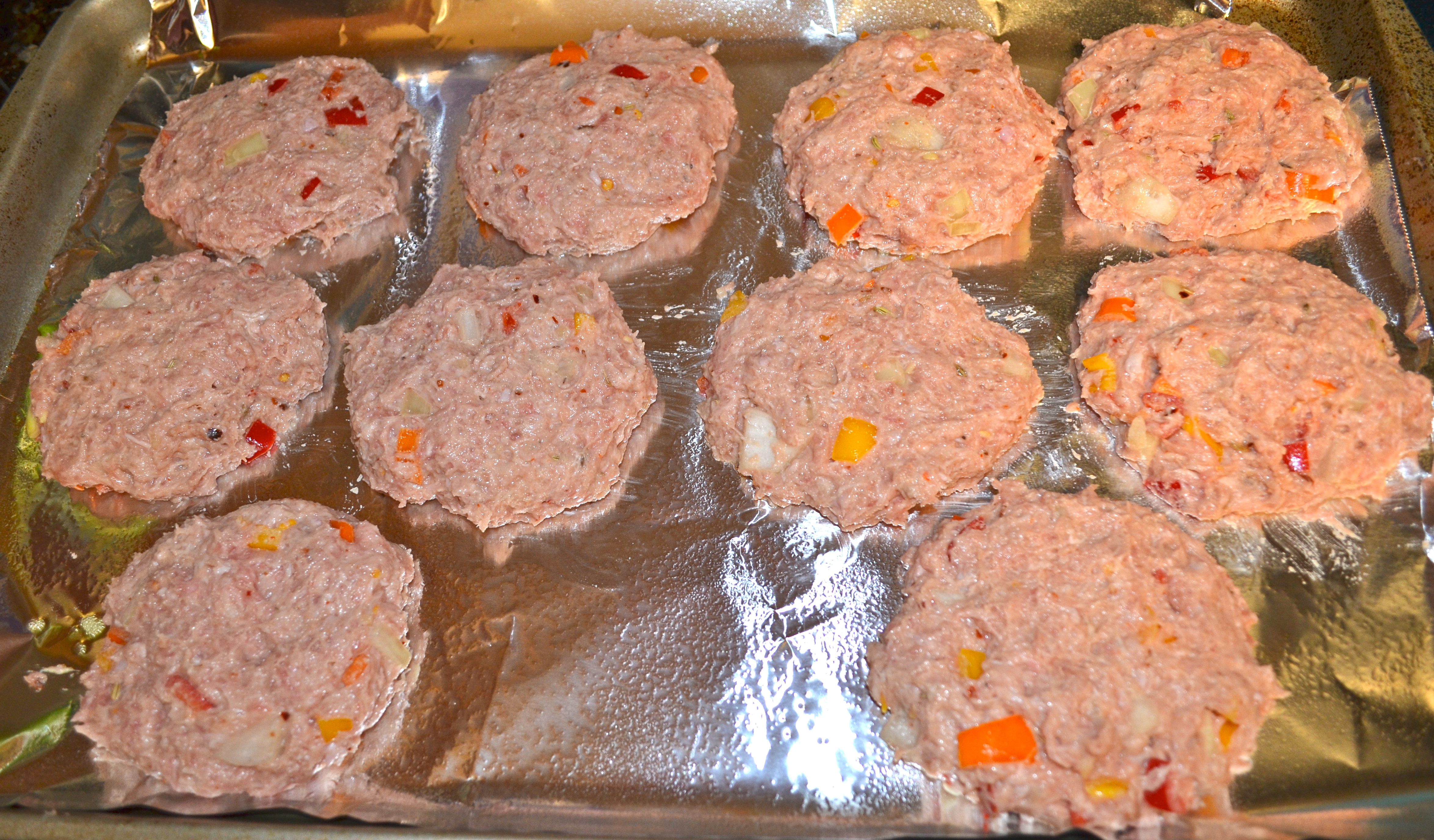 Line a baking sheet with tinfoil and spray with olive oil. Form your patties and place on the baking sheet. This will make about 10 patties