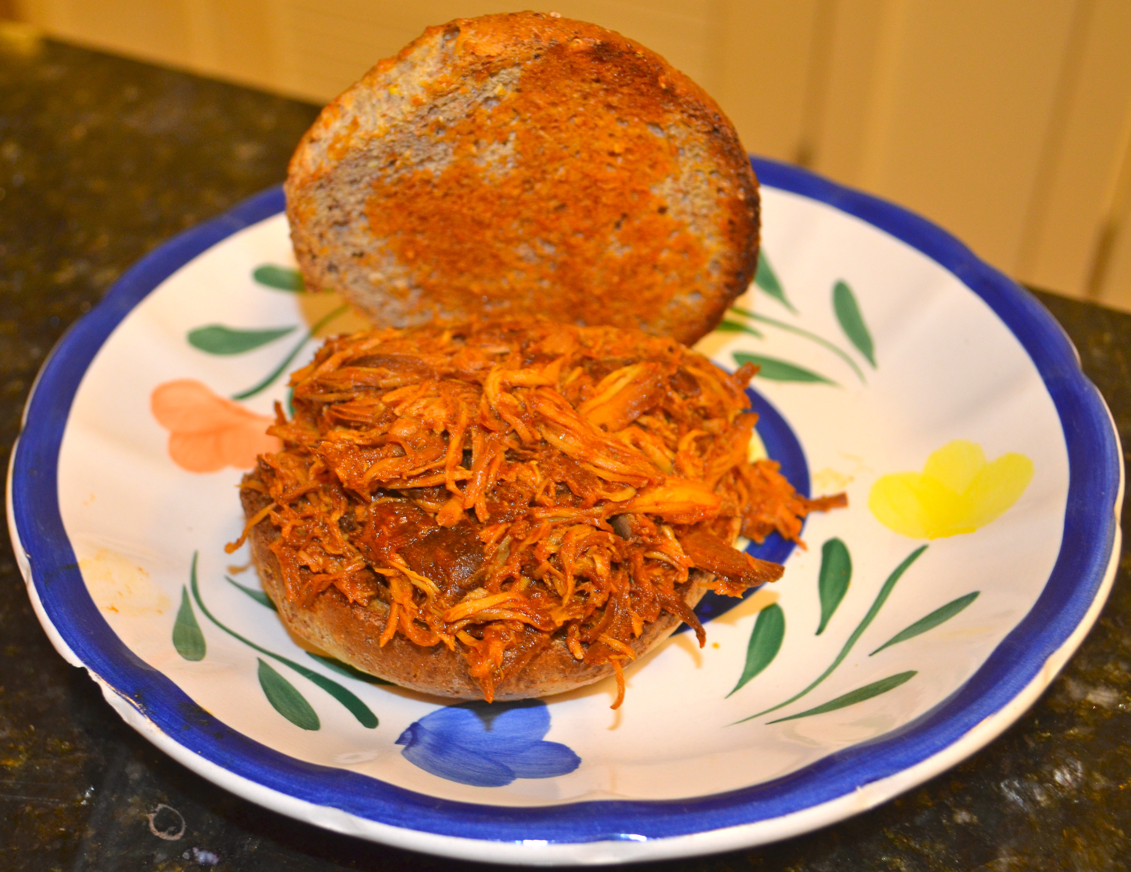 I made my own barbecue sauce and from there decided to make a pulled chicken recipe with it. It will last for the week and will be a different taste instead of regular chicken breast!