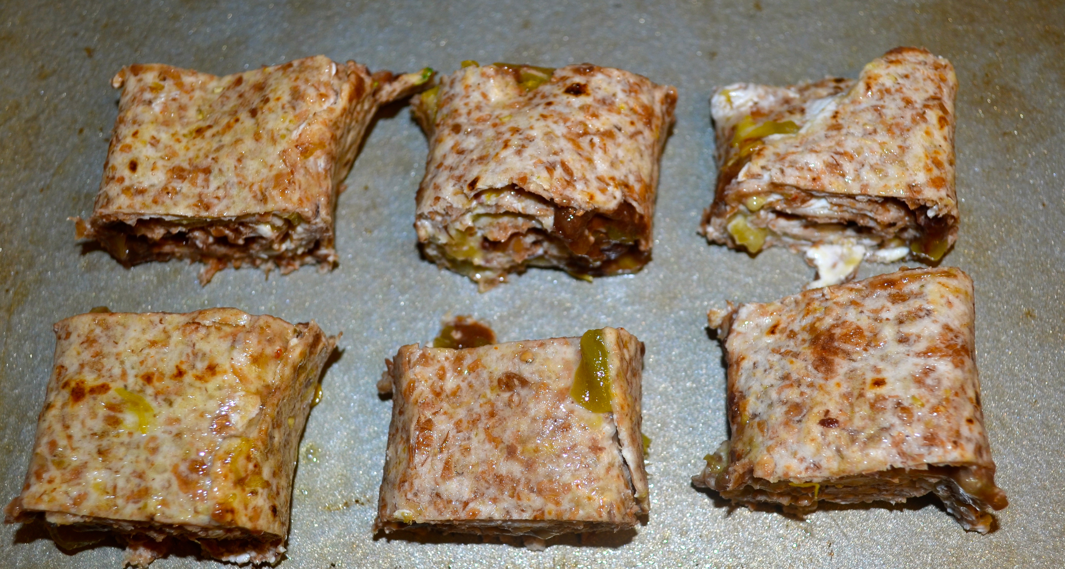 These Mexican Pinwheels have: 42.5 calories, 1.5 grams of fat, 5.3 grams of carbs, and 1.7 grams of protein per serving (1 pinwheel)