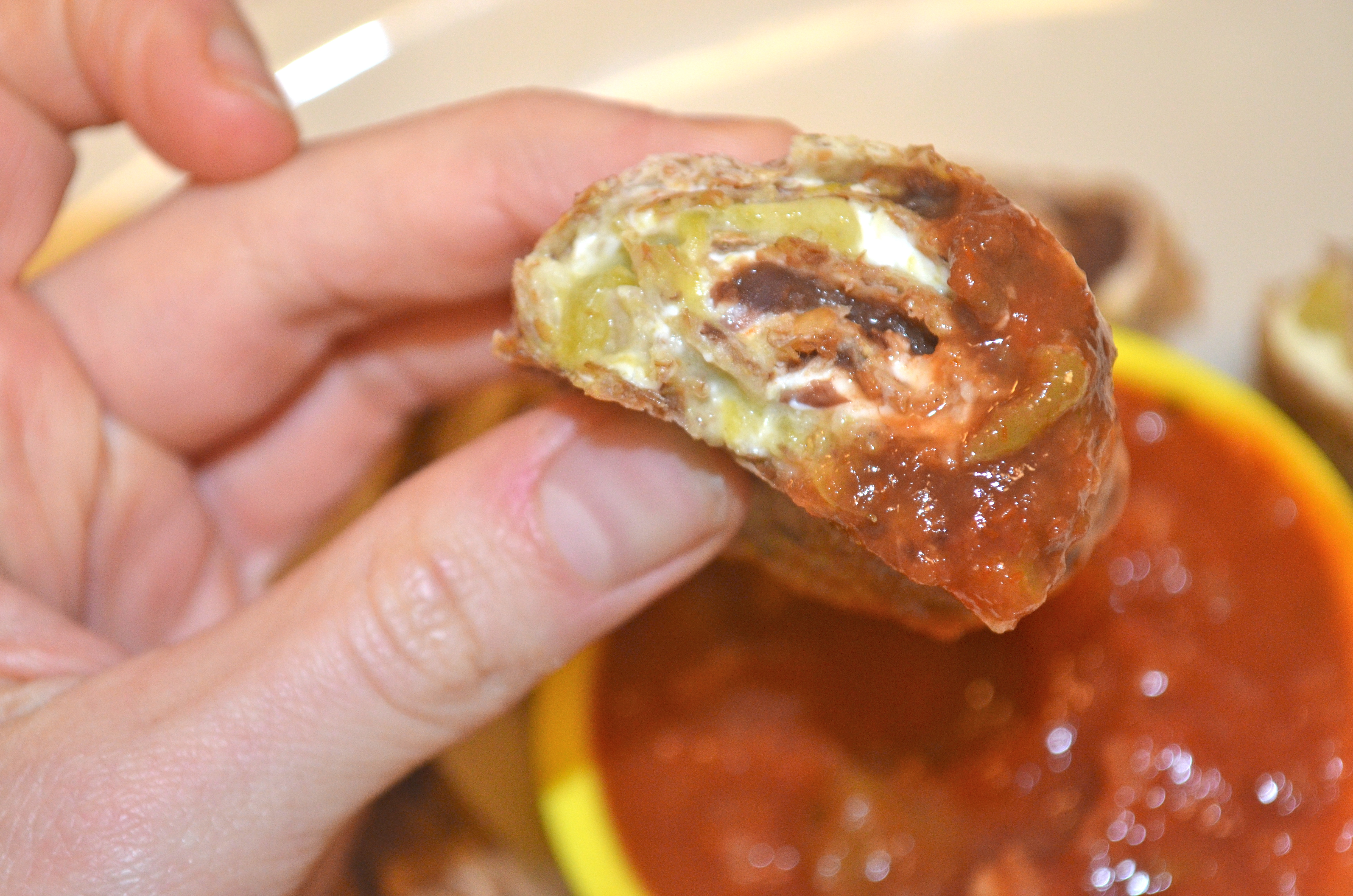 Then the bean dip, I like to place on the sides