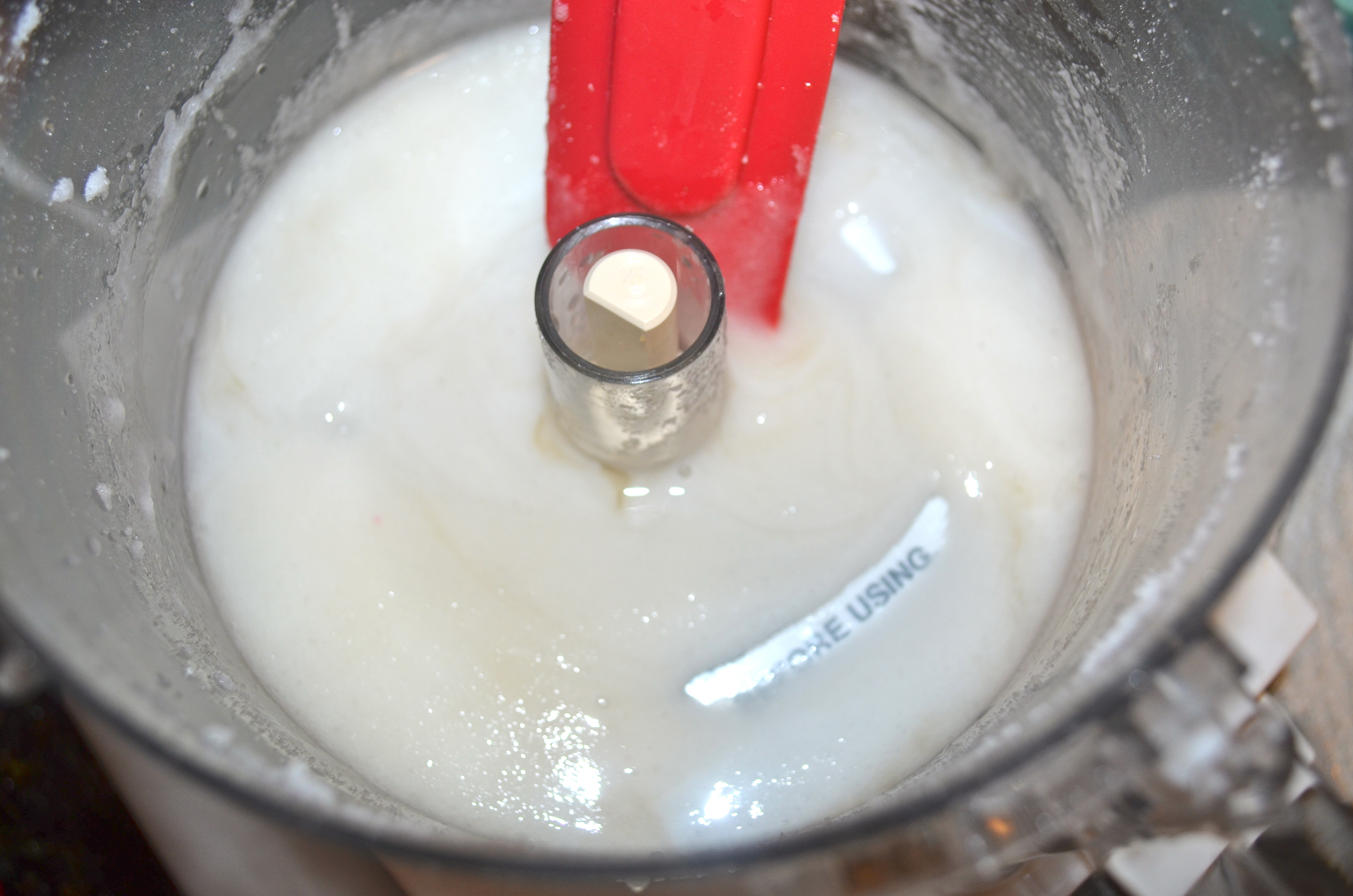 To a food processor add 1/2 cup of xylitol. Xylitol (40% less calories than real sugar) is a crunchy sugar crystal, so when blended, it makes a powdered sugar! Blend for a minute or two until it becomes snow like