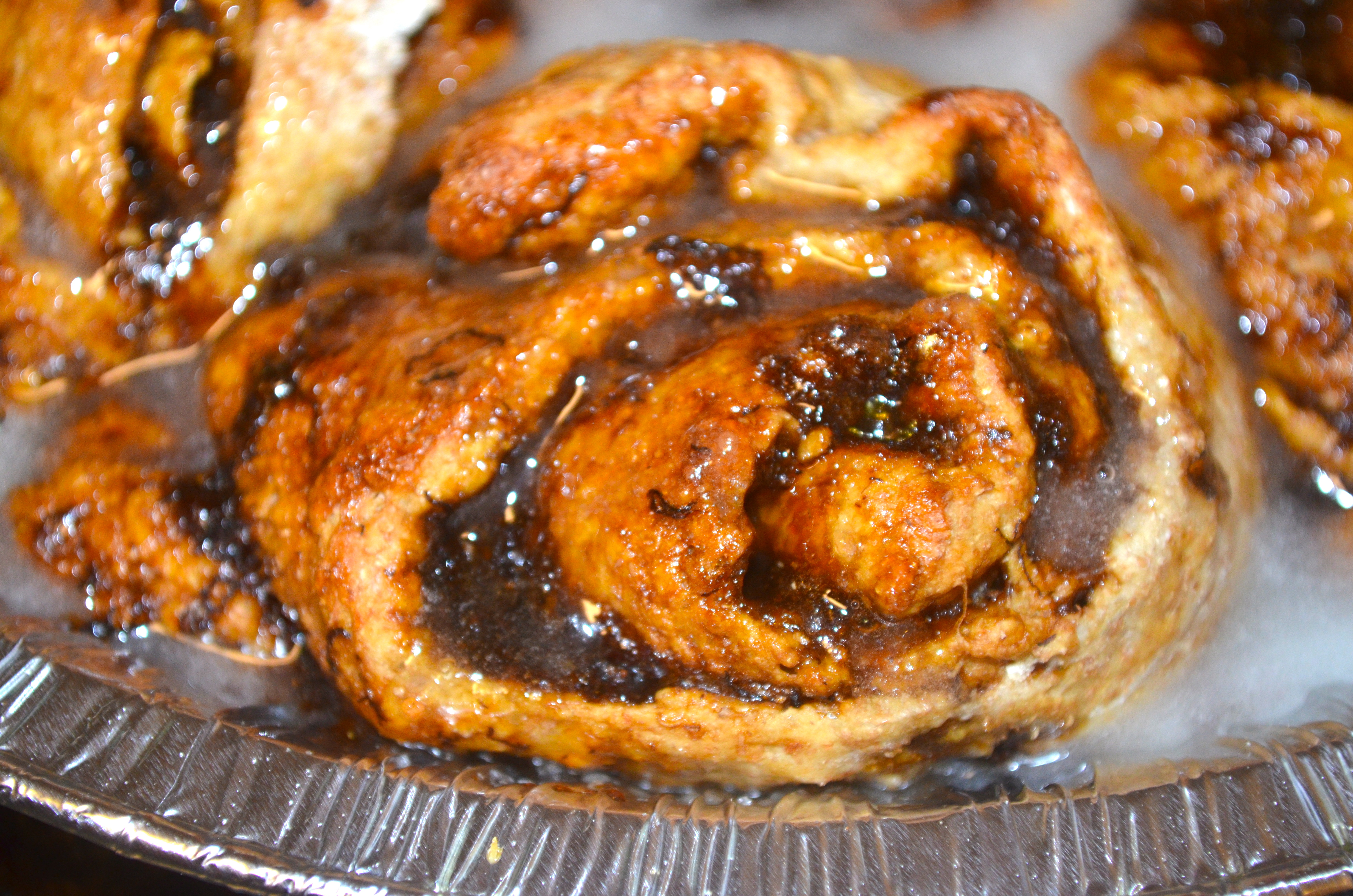 My sticky bun has 205 calories, 1.7 grams of fat, 33.4 grams of carbs, 3.2 grams of protein, and 13.4 grams of sugar.