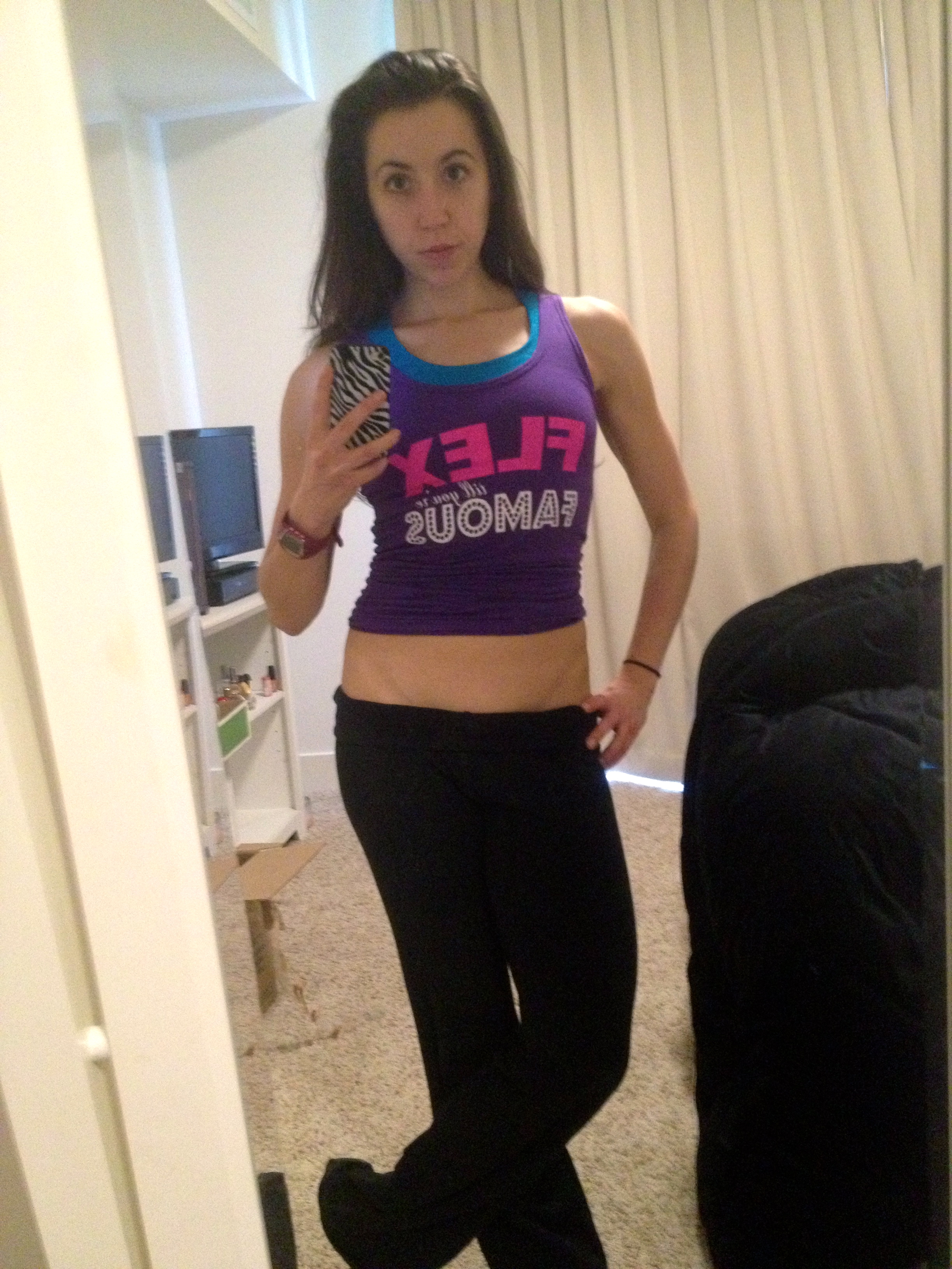 111.6 pounds… I haven’t been this small in a very long time. That’s almost 5 pounds in 10 days! I honestly think I am starting to lose muscle, which is why I am not happy about it. My arms do not look as “jacked”, but my tummy is definitely flattening. After e-mailing my coach with my weight and concerns we both agreed I am losing it too fast since I still have 11 weeks to go. Therefore, we are going to be increasing my food intake even more and tuning down the cardio. I need to focus on building muscle right now, not losing pounds.