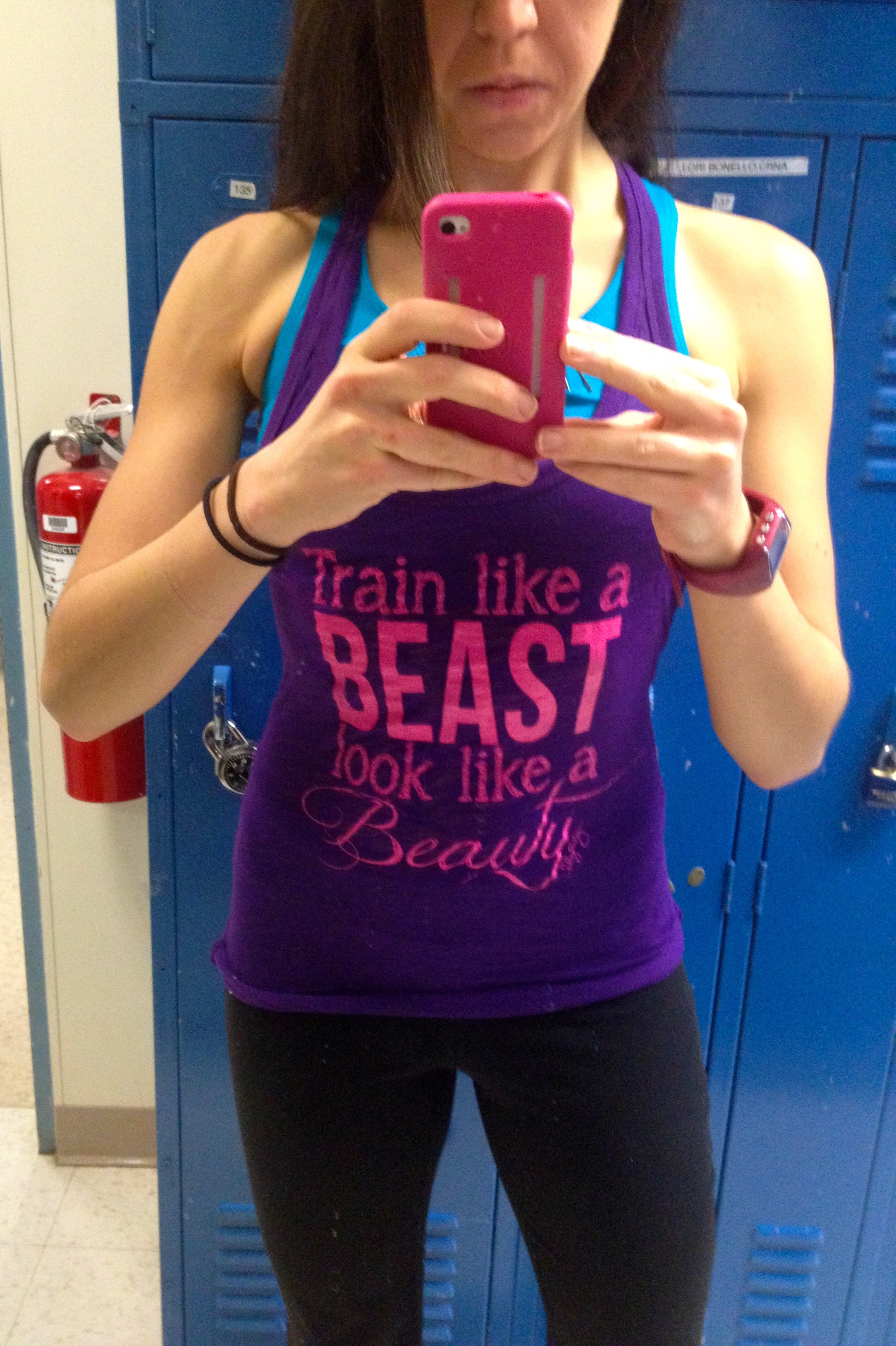 I bought another one that says “beast mode” in white too. Motivation right there on my shirt! 🙂
