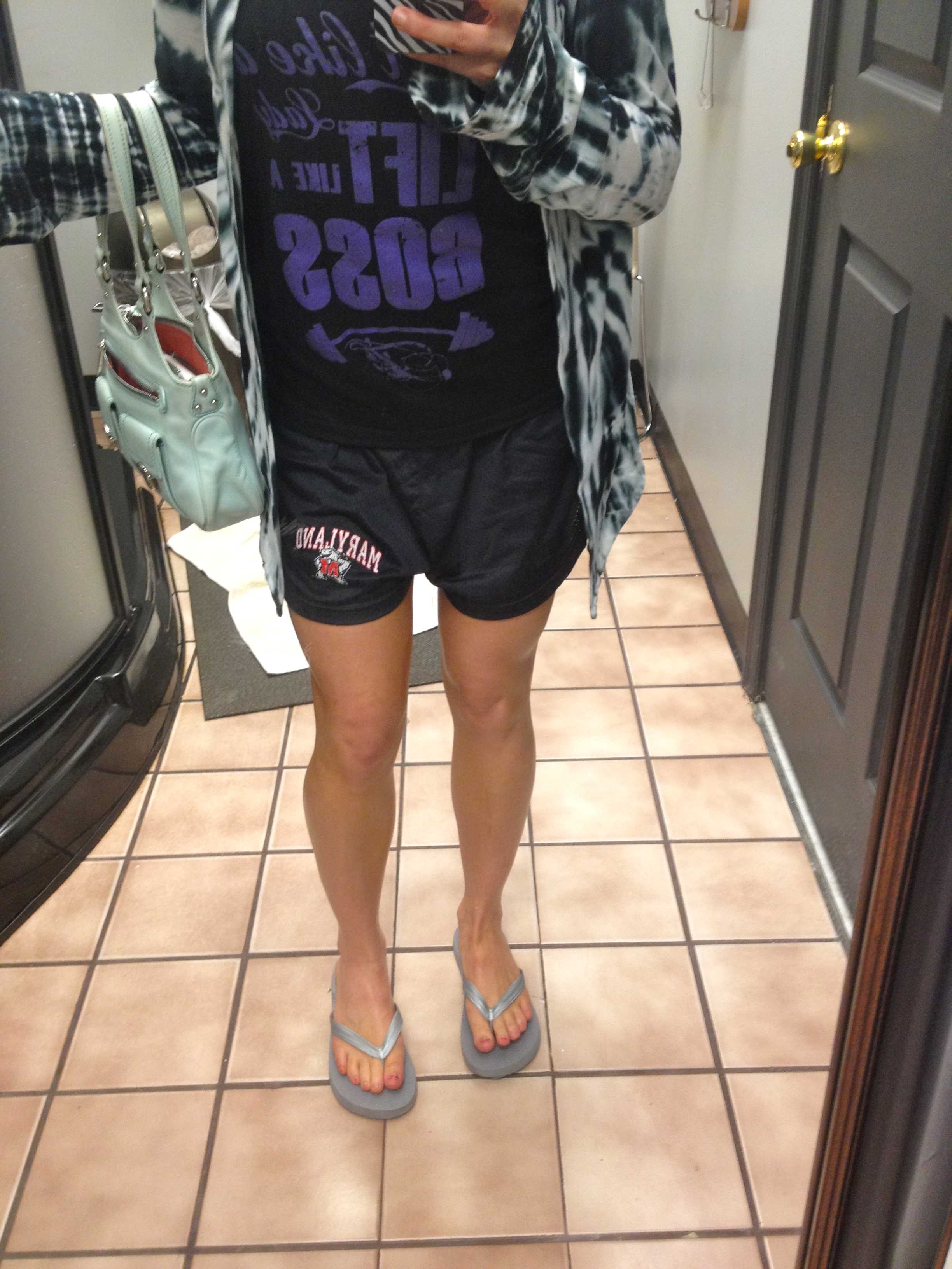 After my gym sesh, I headed in the mall to find a few pairs of shorts. I actually went in Forever 21… call me a snob, but I do not normally shop there. Β To my surprise, the clothes were actually SUPER cute, just cheaply made. It’s one of those you wear once or twice then throw out. I guess a lot of girls shop here when they need that top to go to the club or something one night, but let’s face it… me in a club? Laughable! Only club you will find me in is a gym. I went in because this prep has me all over the place with my sizes. I didn’t want something too expensive that is not going to fit later on down the road. So I picked up 3 pairs of shorts that were only 13.50-18 bucks a piece. Including these, which were the ONLY pair in the store and I thought they were so adorable!